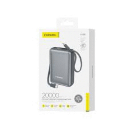FONENG PX116 20000mAh Mini 22.5W Power Bank with 2 Built-in Cables – Dark Gray