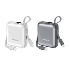 FONENG PX115 10000mAh Mini 22.5W Power Bank with 2 Built-in Cables – Dark Gray