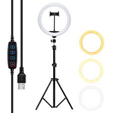 লাইভ ভিডিও, মেকআপ বা কনটেন্ট তৈরির জন্য অ্যাডজাস্টেবল লাইট সহ LED রিং।